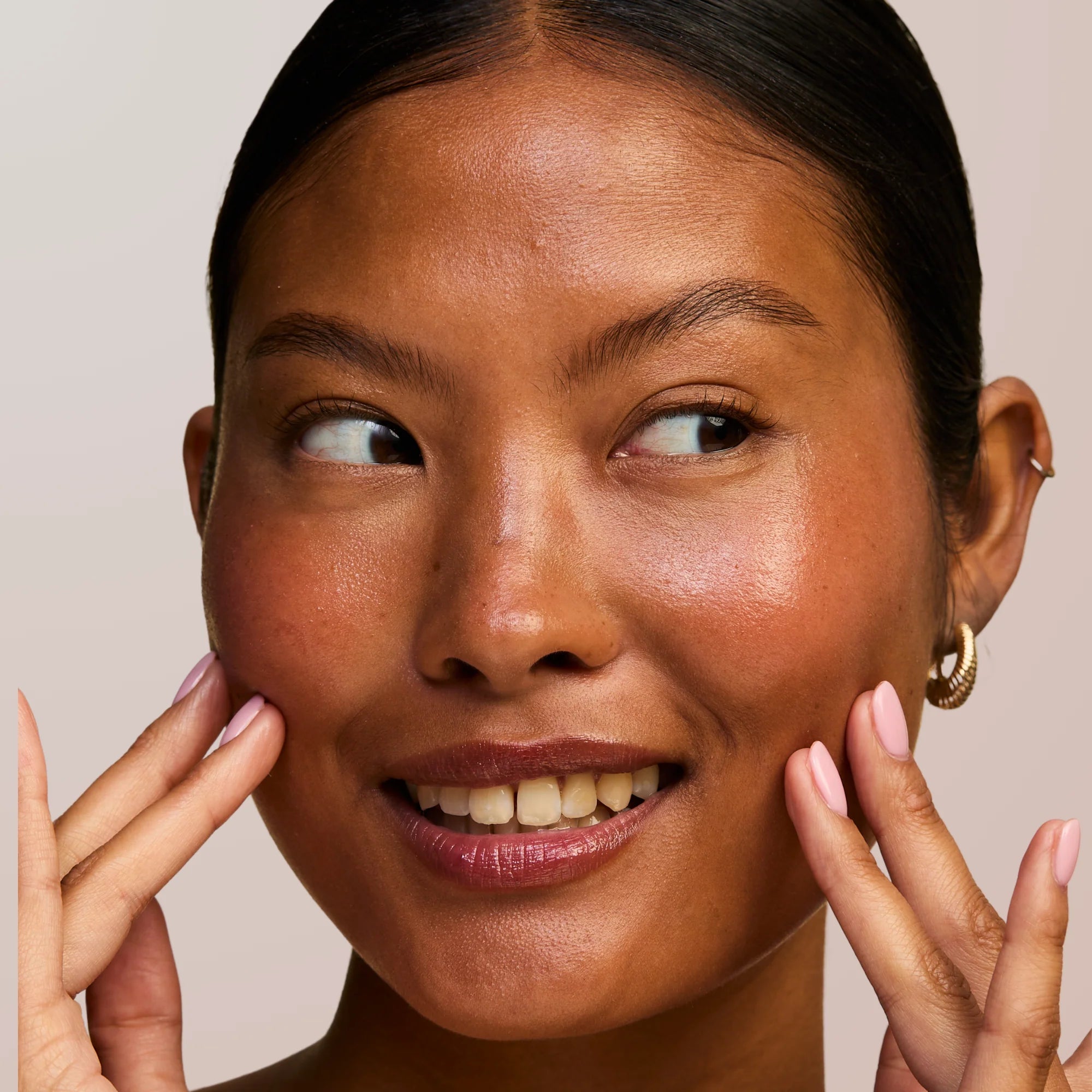 1️⃣ Appliquez une huile ou un sérum sur le visage propre.